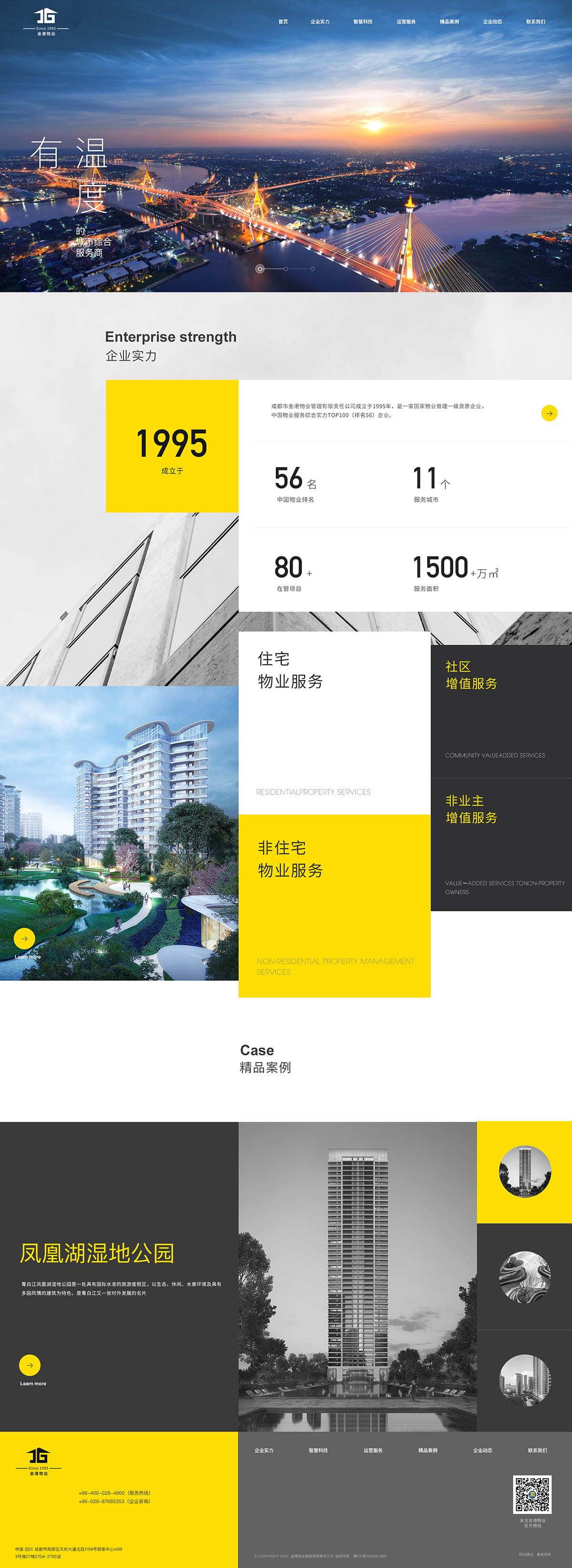 歷經(jīng)25年的穩(wěn)健發(fā)展,金港物業(yè)致力做“有溫度的城市綜合服務商”,其業(yè)態(tài)涵蓋住宅、寫字樓、商業(yè)物業(yè)、企業(yè)總部及機關事業(yè)單位、政府及其它公共設施、公園與景區(qū)、醫(yī)院與學校、產(chǎn)業(yè)園區(qū)、高速公路服務站等多種業(yè)態(tài)。